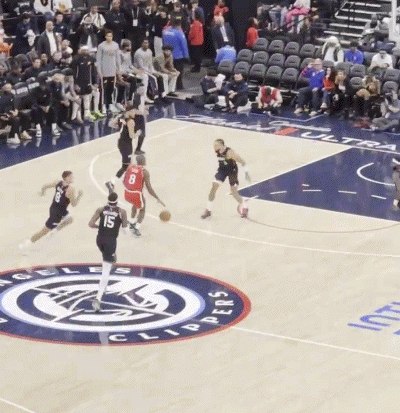 哈登拔起撤步3分被防死空中突然传球 大洛坐打碾压上篮