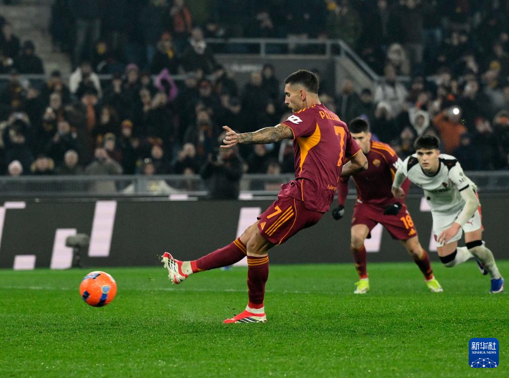 1月25日,罗马队球员佩莱格里尼在比赛中主罚点球得分。