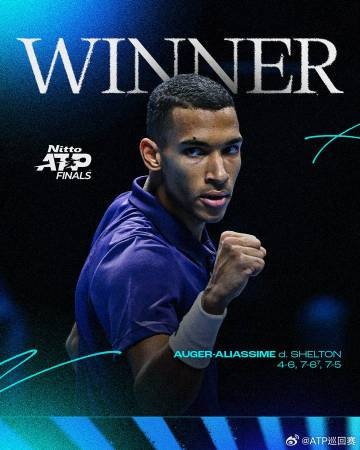 体育日报11月12日播报讯 ATP总决赛比约·博格组小组赛,阿利亚西姆2-1逆转谢尔顿。