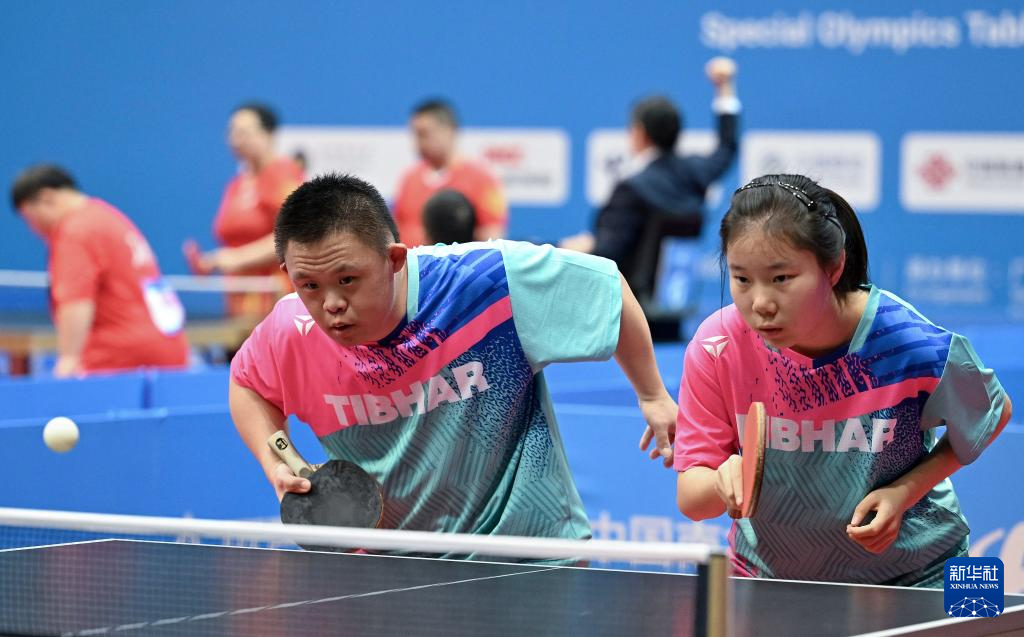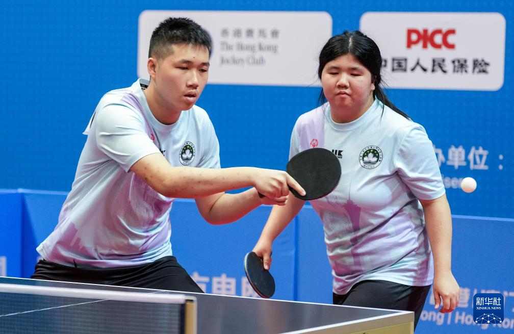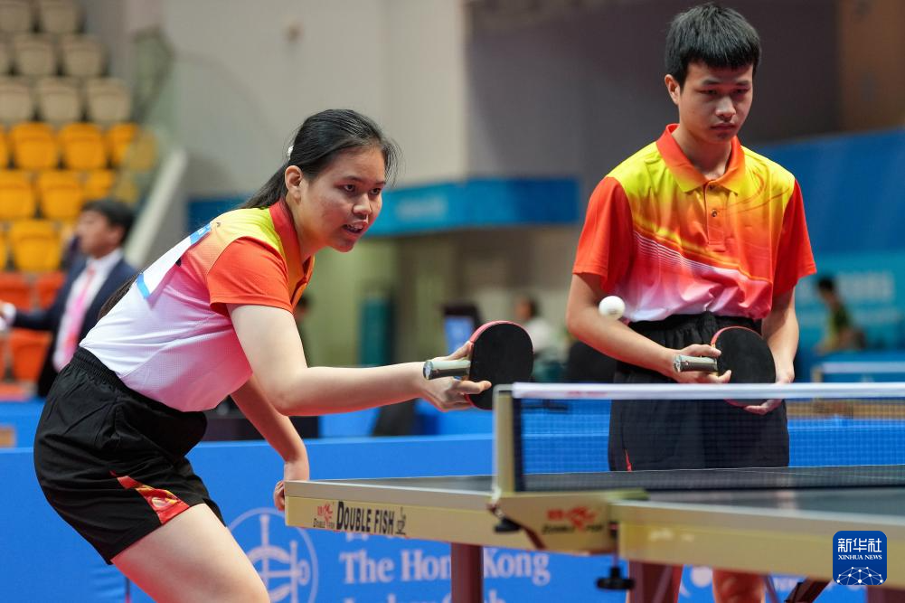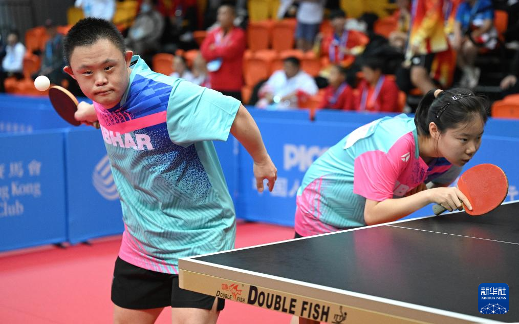 当日,全国第十二届残疾人运动会暨第九届特殊奥林匹克运动会特奥乒乓球项目混合双打16-21岁组比赛在香港举行。