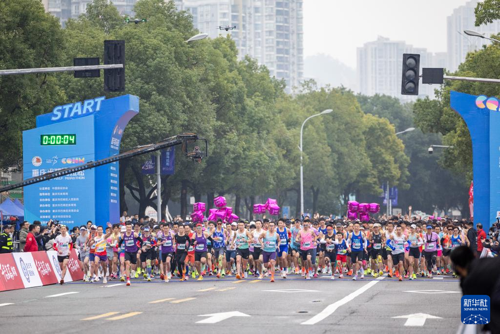 当日,2025重庆半程马拉松在重庆鸣枪开跑。