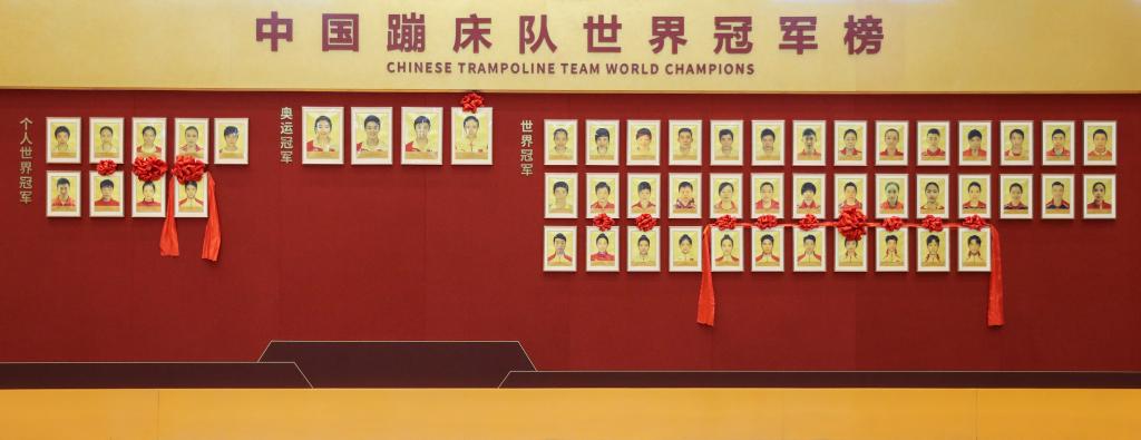 这是12月22日在登榜仪式上拍摄的中国蹦床队世界冠军榜。体育日报发(马子涵 摄)