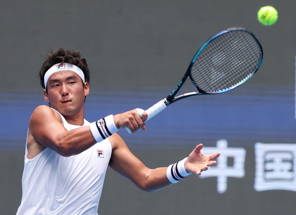 9月26日,在2025中国网球公开赛男单首轮比赛中,布云朝克特在比赛中回球。体育日报发(马子涵 摄)