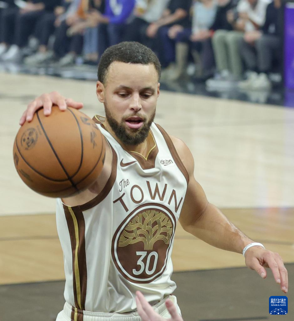12月22日,勇士队球员库里(左后)在比赛中伺机传球。