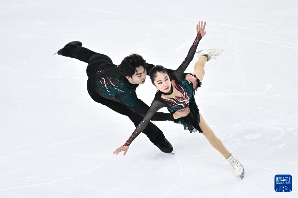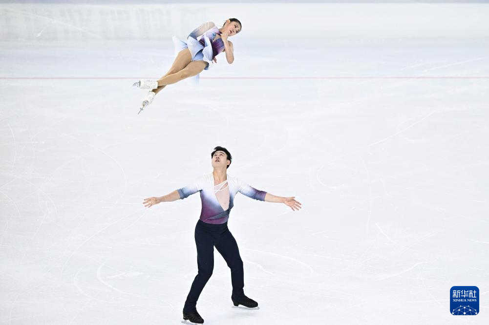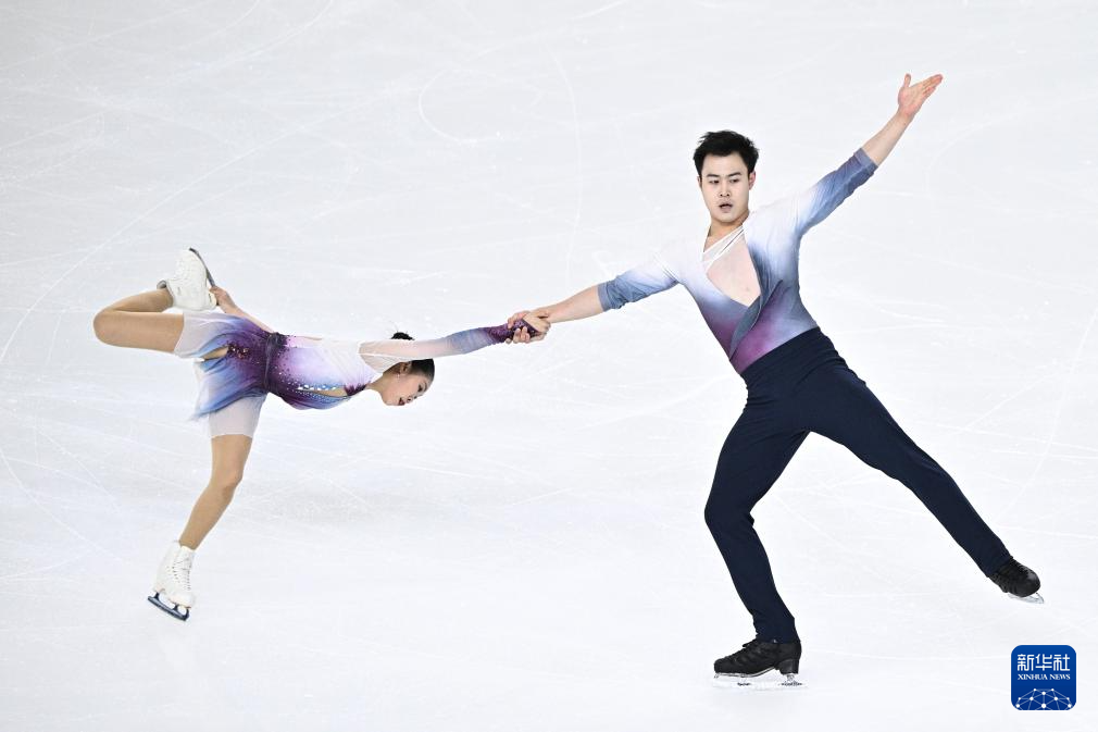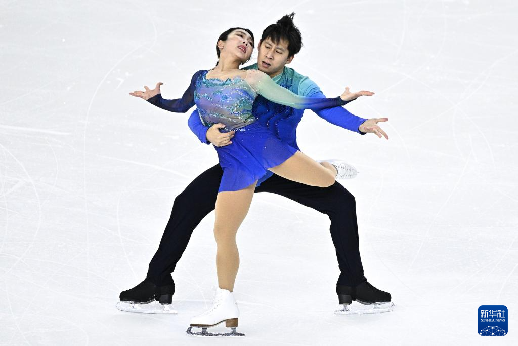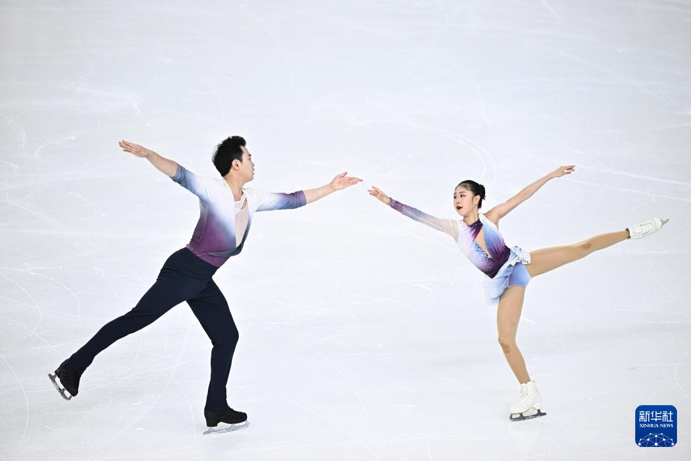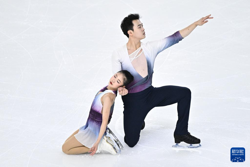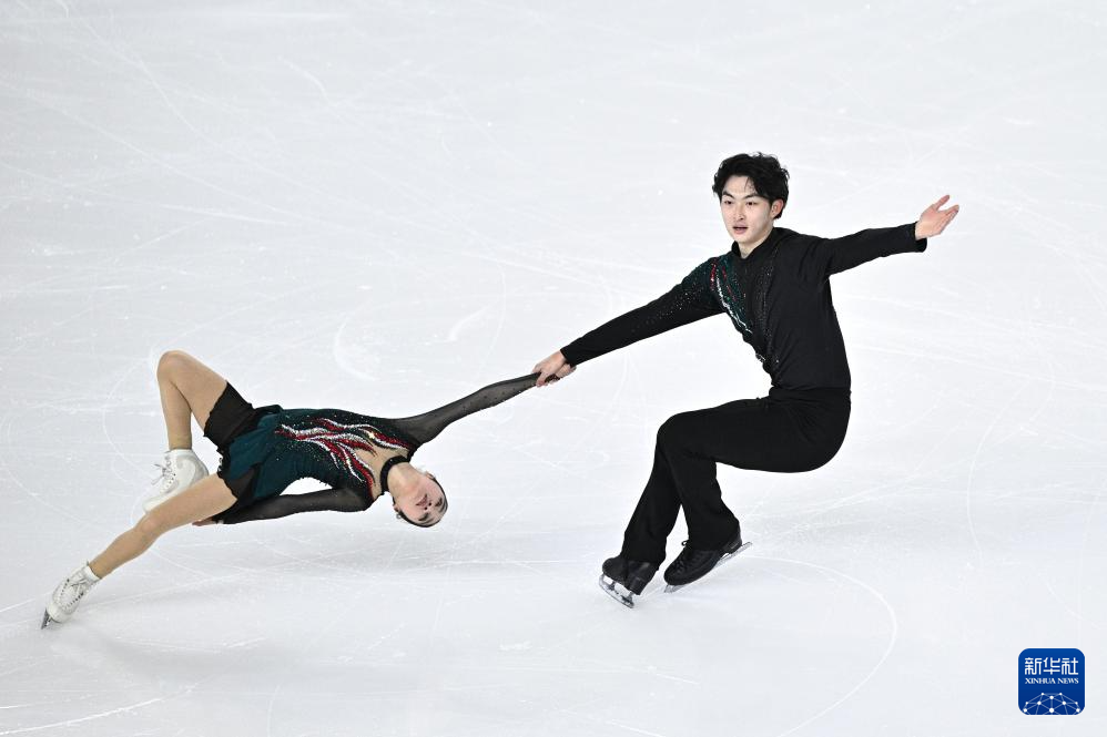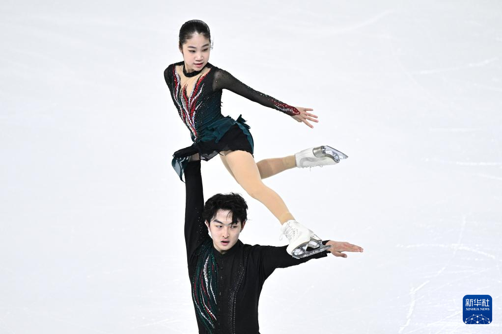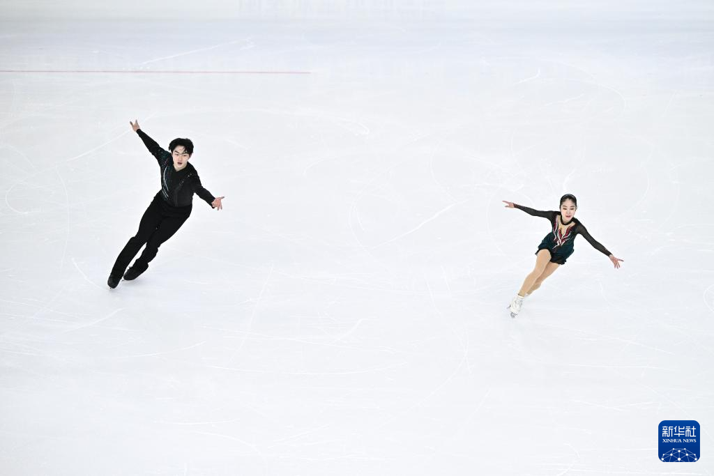 12月27日,齐齐哈尔市冬季运动项目中心(齐齐哈尔市滑冰学校)组合郭蕊(左)/张益文在双人滑自由滑比赛中。他们获得双人滑项目亚军。