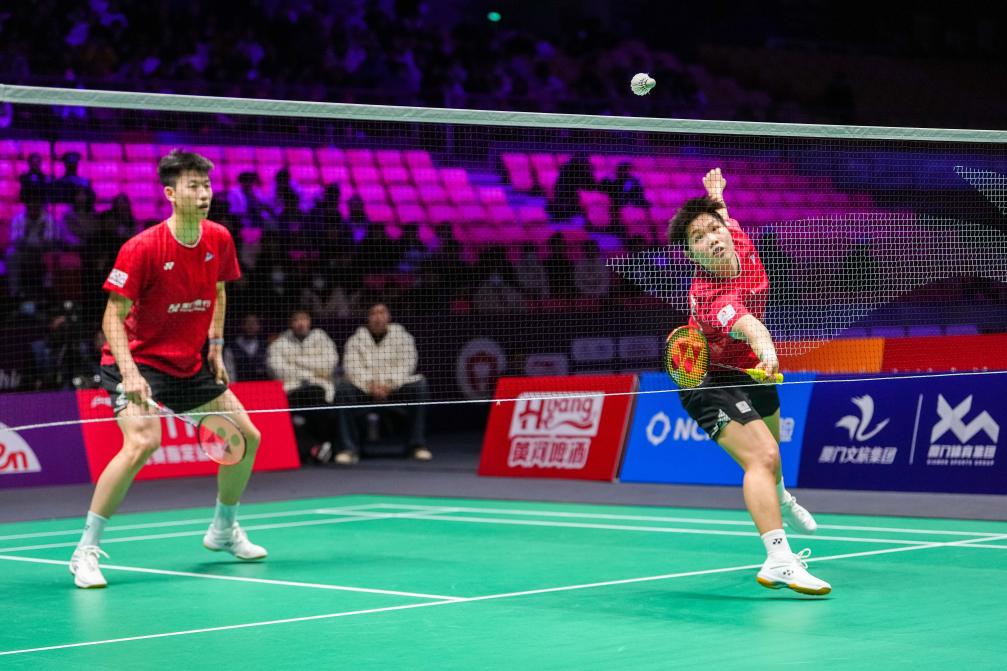 当天上午开始的一场半决赛中,厦门银行队与浙江竞体队按照混双、女单、女双、男单、男双的顺序进行“五场三胜”比拼。不久前斩获世界羽联世界巡回赛总决赛混双冠军的冯彦哲/黄东萍代表厦门银行队出战,对阵沈烜垚/吴梦莹。“凤凰组合”在先丢一局的情况下,连扳两局,为厦门银行队先得1分。