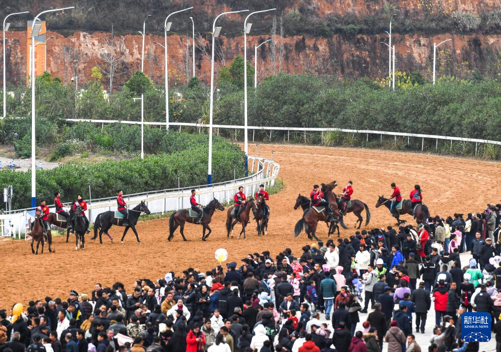1月1日,人们在贵州省三都水族自治县观看“村马”比赛。