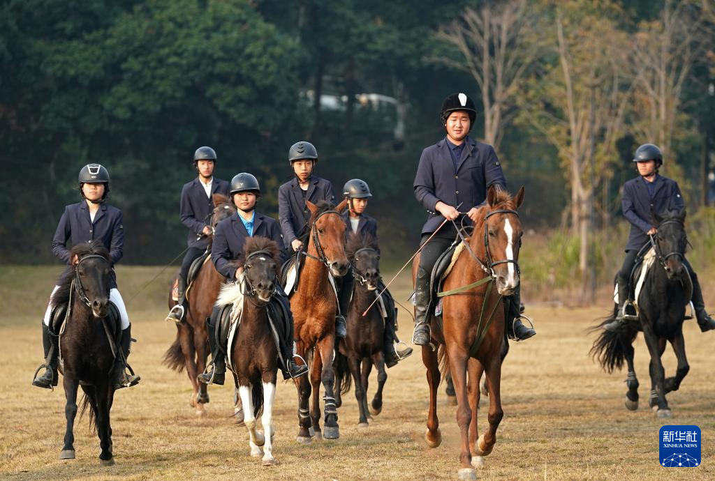 马术班学生在训练场上训练(2025年12月23日摄)。体育日报记者 万象 摄