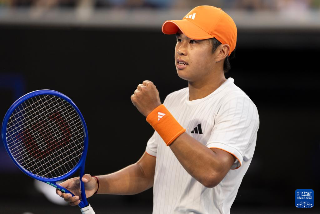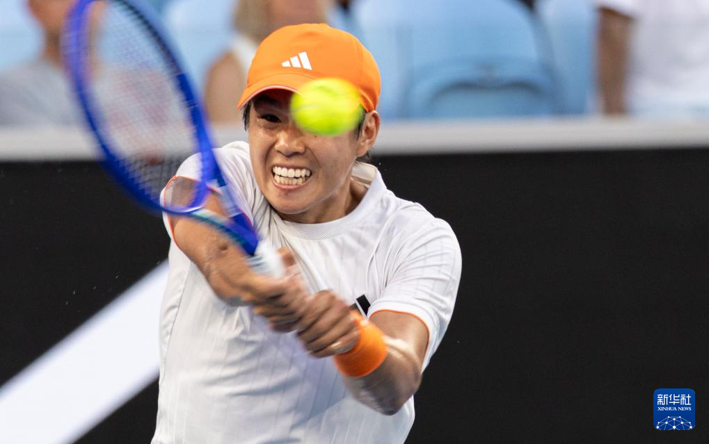 1月25日,勒纳·钱在比赛中回球。