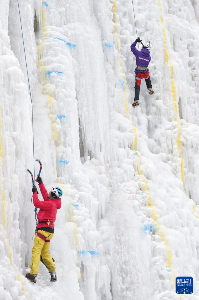 1月25日,青海省第四届冰雪运动会暨职工冰雪运动会攀冰比赛在青海省西宁市湟源县大黑沟旅游景区攀冰场举行,赛事吸引了数十位来自各行各业的攀冰爱好者参与。