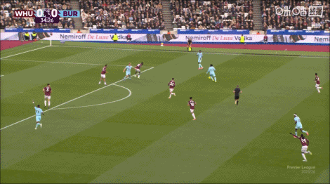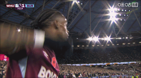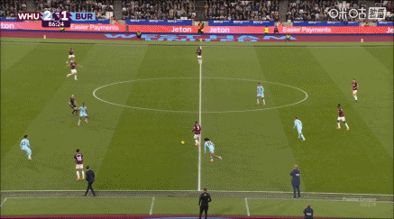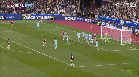上半场补时4分钟,西汉姆1-1伯恩利。