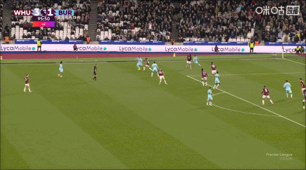 下半场补时6分钟,西汉姆3-2伯恩利。