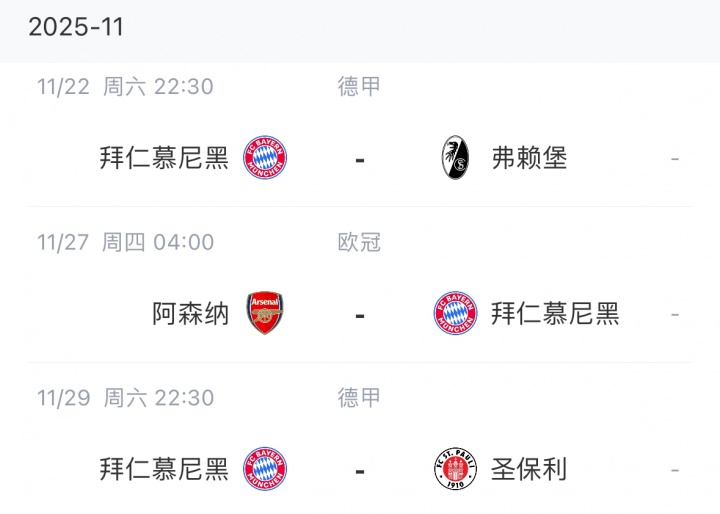 拜仁后续赛程↓