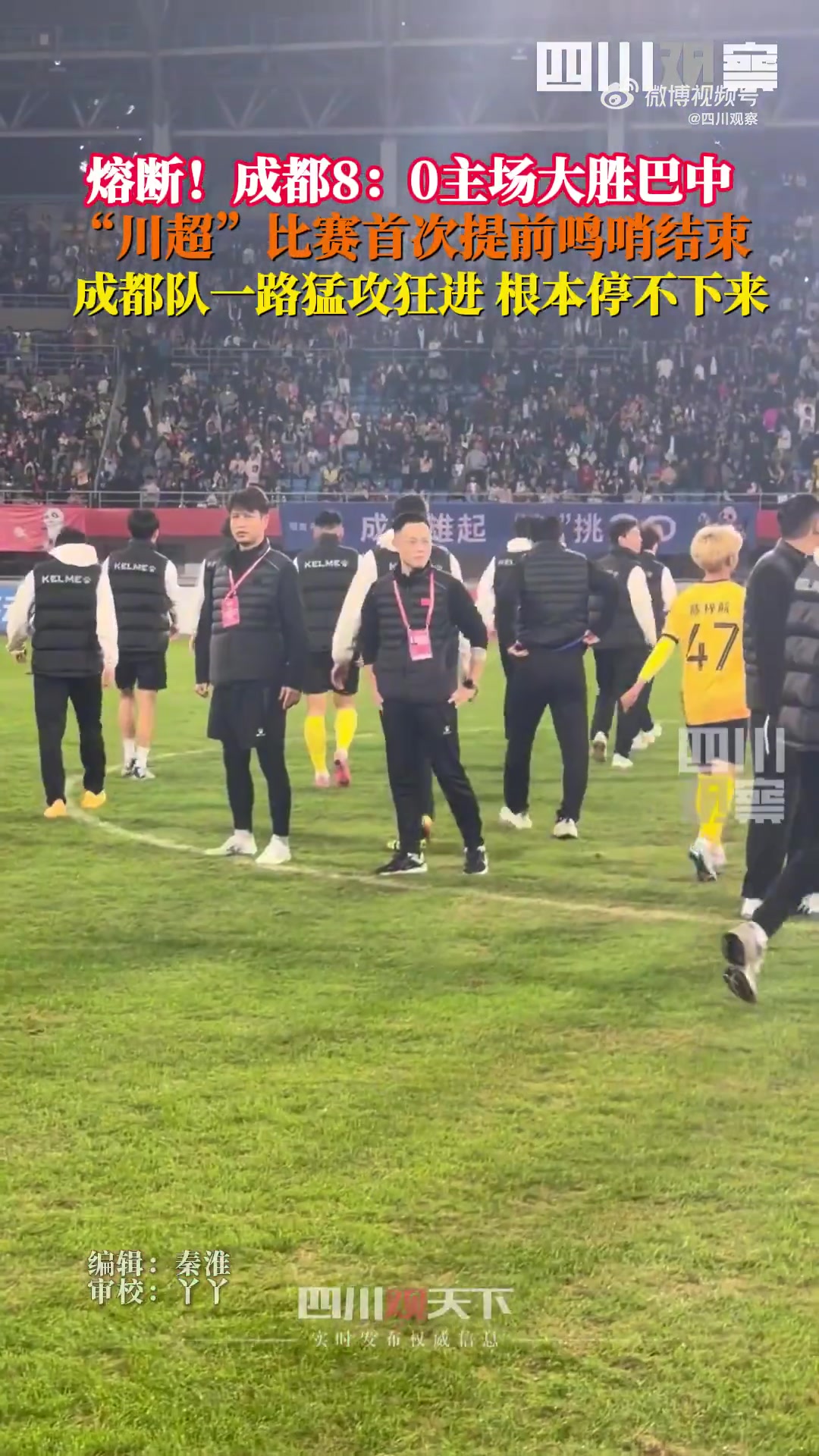 川超首次熔断!成都8-0巴中 裁判第65分钟吹停比赛,门将落泪哽咽