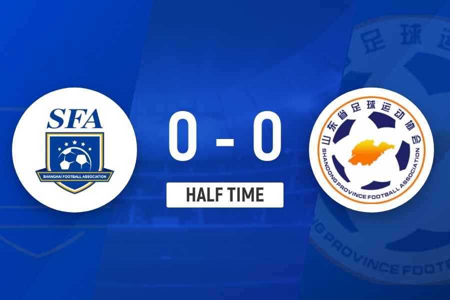 半场战罢,山东U20队暂0-0上海U20队。