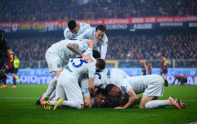 率先出场的AC米兰被萨索洛逼平,那不勒斯又翻车不敌乌迪内斯,争冠的对手同一轮集体没有赢球,这让国米看到了反超的机会。客战热那亚比塞克第6分钟便接到劳塔罗的回敲后左脚劲射近角打破场上平衡;第38分钟,劳塔罗禁区内扛开防守后劲射再接再厉扩大优势;劳塔罗也成为了姆巴佩,哈兰德和凯恩后,仅有的连续7个赛季在五大联赛参与进球上双。纵使热那亚下半场追回一球,国米仍然2:1取胜,反超米兰1分来到意甲榜首。