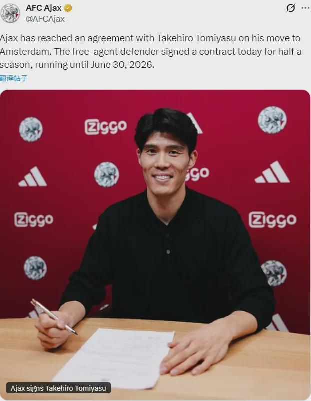 官方:阿贾克斯宣布就免签富安健洋达成了协议,这名后卫签下了一份2026年夏天到期的半年合同。