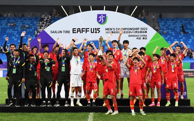 没曾想这次无心插柳柳成荫!在恒大足校日本籍教练的率领下,这支U15国足过关斩将越战越勇,最后一场跟日本U15队在常规比赛中战成0比0,并在点球大战以4比2取胜,捧走了首座U15东亚杯冠军奖杯。