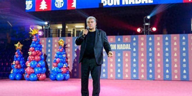 12月18日西甲日报晚,巴塞罗那俱乐部主席拉波尔塔在巴萨篮球馆主持了俱乐部一年一度的传统圣诞晚宴。包括男女足一线队、各职业梯队全体球员、教练组成员以及俱乐部全体员工在内的数百人齐聚一堂,共庆佳节。