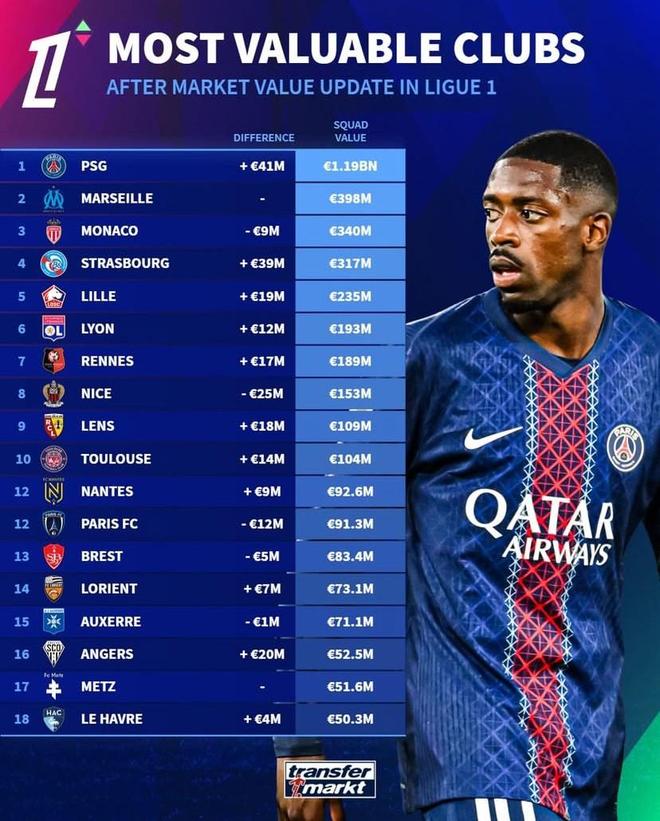 身价前十名占九席,巴黎在法甲难寻对手!唯一挑战者是曼联遗珠