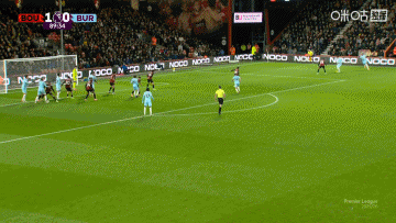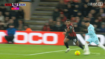 第90分钟,伯恩利战术角球开出,皮球传中到禁区内,布罗亚头球绝平!伯恩利1-1伯恩茅斯↓