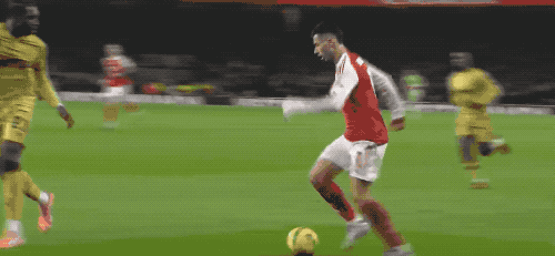 第23分钟,马丁内利再次送出妙传,热苏斯的头球直奔死角,门将做出神勇扑救后,又挡出了马杜埃凯的补射。