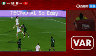 第87分钟,塔尔比示意萨穆埃尔有手球,主裁判去场边回看视频回放后,判罚了点球!阿布迪主罚点球命中!突尼斯连追2球2-3尼日利亚↓