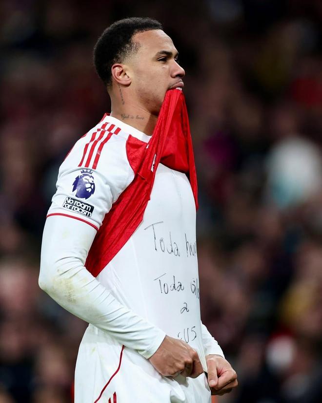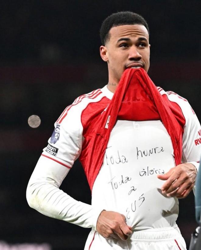 赛后,加布里埃尔在社交媒体晒出多张庆祝进球的照片并写道:“荣耀与颂赞全归于上帝!”