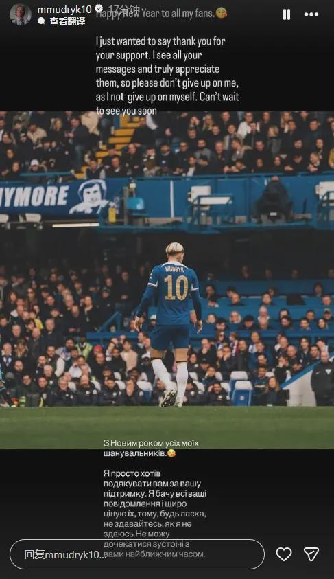 2026年第一天,切尔西边锋米哈伊洛·穆德里克在社交媒体上发出了那段令人心碎的新年问候:“所以请不要放弃我,我也没有放弃自己。”