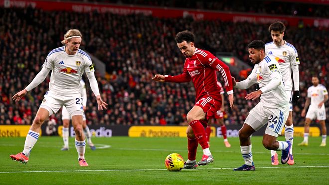 第81分钟,勒温在乱战中破门,但因为越位被秒吹。最终,利物浦主场0-0战平利兹联,各项赛事的4连胜就此止步。