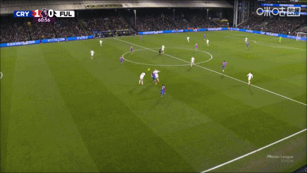 第39分钟,水晶宫右路攻势,克莱因过掉上抢的对手,杀到禁区右侧边缘,传中到小禁区内,马特塔头槌破门!水晶宫1-0领先富勒姆↓