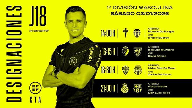 北京时间1月2日西甲日报,西班牙足协官方公布了联赛第18轮第2比赛日的裁判名单,维克托-加西亚执法巴萨客战西班牙人。