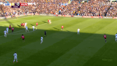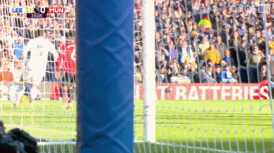 比赛第35分钟,勒温头球攻门,击中立柱,曼联逃过一劫。