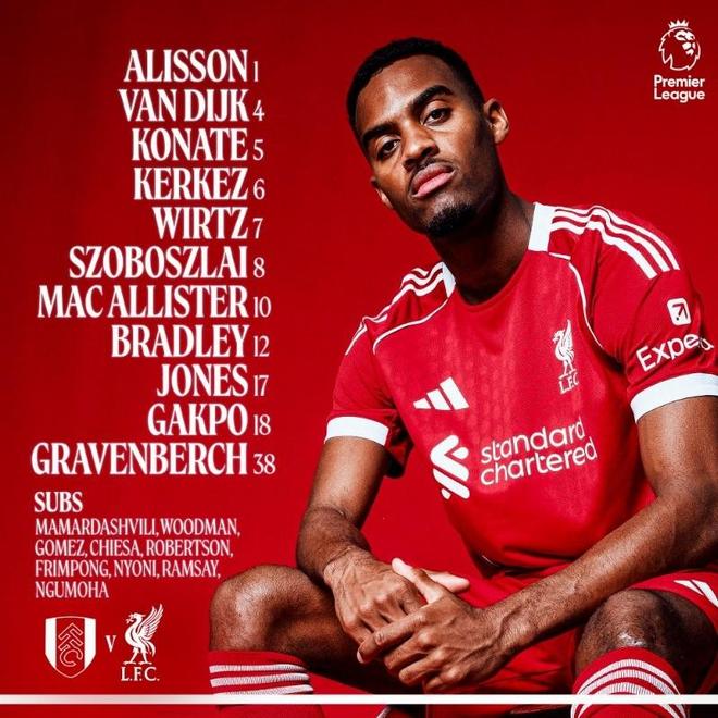 利物浦客战富勒姆:维尔茨、加克波首发,布拉德利、琼斯出战