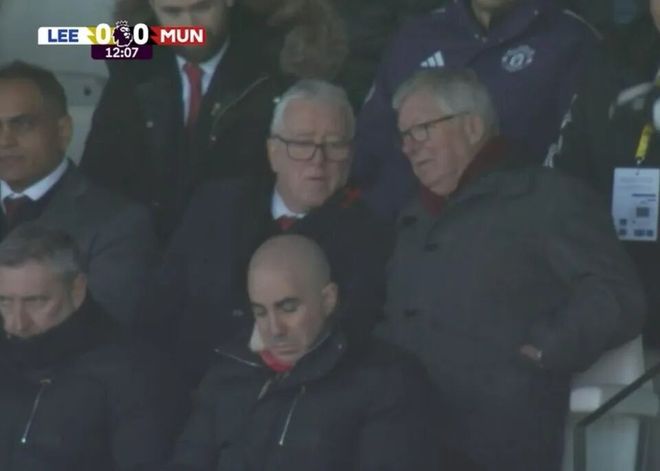 看台上与昔日英超日报球衣管理员阿尔伯特·摩根一起看球的弗爵,也显得有些百无聊赖。