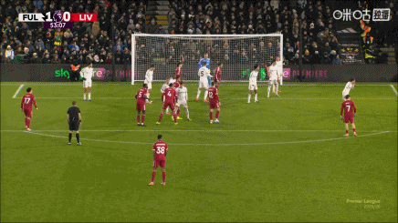 比赛第54分钟,索博斯洛伊开出角球,麦卡利斯特头球攻门击中横梁。场上比分利物浦0-1富勒姆。