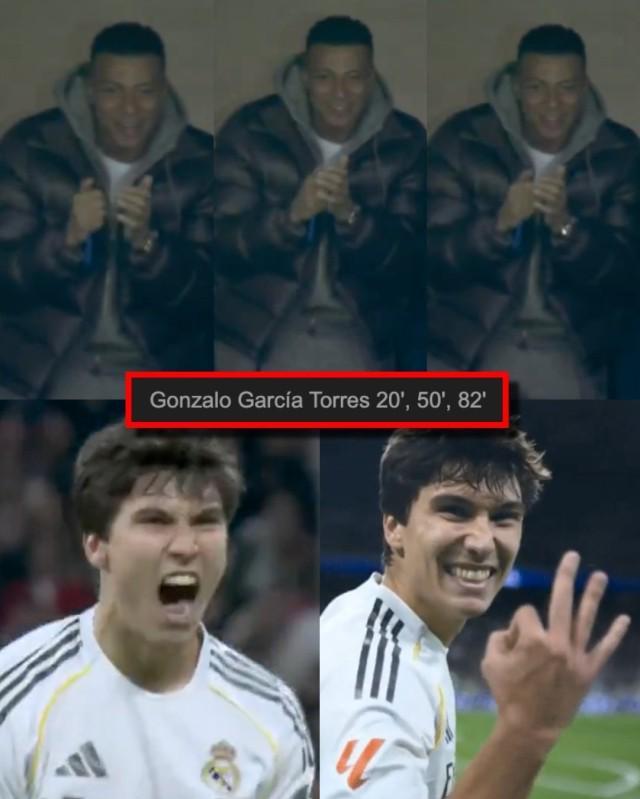 皇马5比1贝蒂斯,大演帽子戏法的贡萨洛·加西亚是绝对主角。全场他射门3次,全部转化为进球!且3粒进球各具特色——后点头球吊射、胸停凌空世界波、抢点脚后跟巧射——完美展现其全能性和可塑性。去夏世俱杯贡萨洛就已一鸣惊人,夺得赛事金靴,但皇马大牌众多,赛季开始后他只能与板凳为伍。此番姆巴佩受伤,贡萨洛得以第2次代表皇马联赛首发(上一次对西班牙人,与姆巴佩搭档双前锋),便贡献了如此炸裂演出,甚至看台上的姆巴佩也情不自禁一再为他鼓掌。