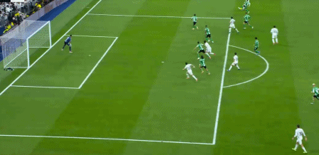 在姆巴佩缺席的情况下,阿隆索让贡萨洛首发出场,维尼修斯、罗德里戈分居两翼。比赛的第20分钟,罗德里戈主罚左侧任意球横传,无人盯防的贡萨洛头球冲顶破门,1比0!