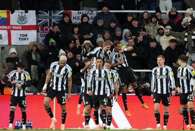 纽卡斯尔联排出433阵型。雅各布-莫菲、维萨和安东尼-戈登的进攻三叉戟联袂出击。吉马良斯、托纳利和乔林顿组成3中场。刘易斯-米利、马利克-佳夫、法比安-舍尔和刘易斯-霍尔4后卫首发出战。波普担任首发门将。哈维-巴恩斯、沃尔特马德、雅各布-拉姆齐和约瑟夫-威洛克坐在替补席待命。