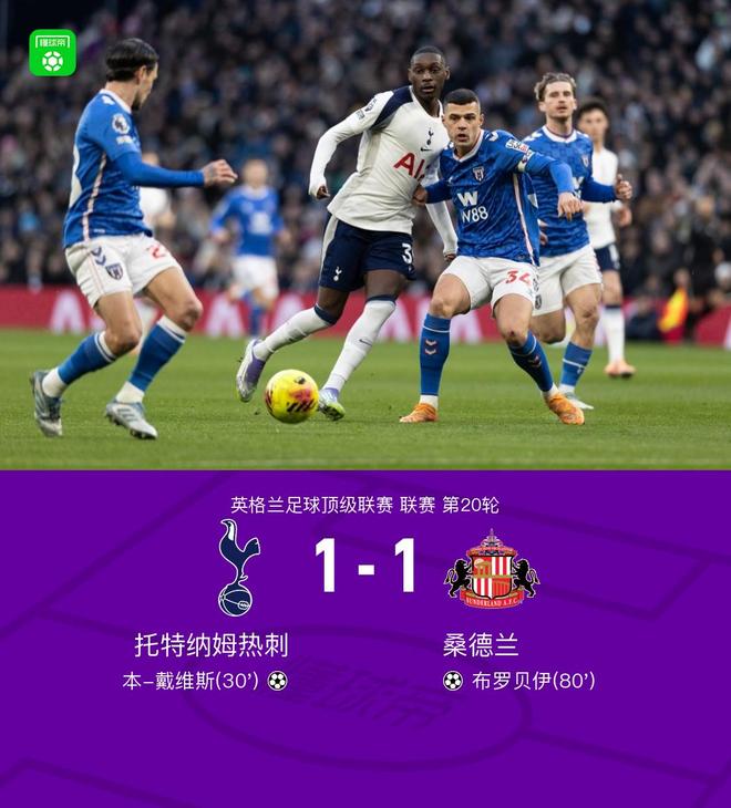剑南春丨热刺1-1桑德兰,本-戴维斯建功,布罗贝伊扳平比分