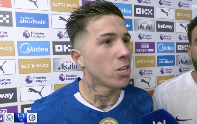 英超第20轮,切尔西客场1-1战平曼城,赛后,此役打入绝平进球的切尔西中场恩佐接受了天空体育的采访。
