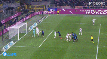 比赛第74分钟,国米右侧角球机会,图拉姆门前用肩膀将球撞进球门!