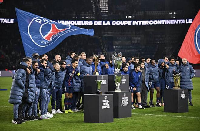 北京时间1月5日法甲日报,法甲第17轮,巴黎圣日耳曼2-1巴黎FC。比赛结束后,大巴黎主场王子公园球场短暂陷入黑暗,迎来了一个特别时刻,巴黎圣日耳曼向现场球迷展示了球队在2025年收获的各项冠军奖杯,其中包括最新入账的洲际杯冠军。