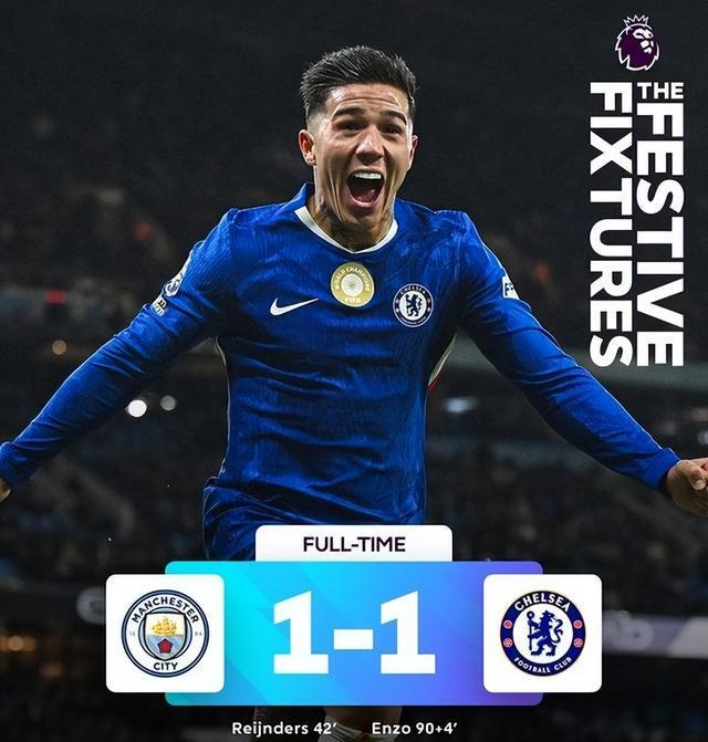 曼城1-1残阵切尔西!恩佐94分钟绝平!阿森纳球迷笑了,已领先6分
