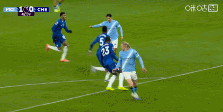 上半场第42分钟,曼城进攻配合,哈兰德做球,赖因德斯跟进劲射破门,1-0!