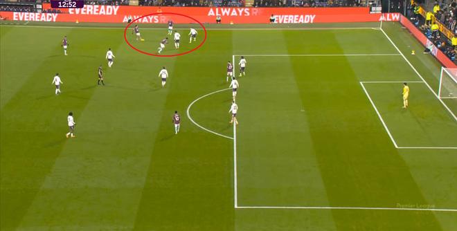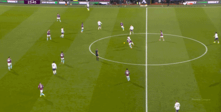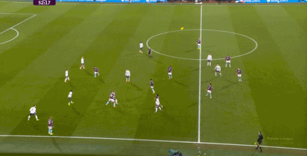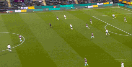而且,攻转守的逻辑也重新发生了变化,比如这次谢什科没有接好球,立刻被伯恩利发展到边路,于是你可以看到,中场、右中卫和右后卫需要形成三人之间的轮转:
