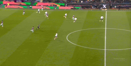 但曼联被打穿肋部是显而易见的事实,而且在局部,你可以看到曼联实际上陷入了二防三的情况,卡塞米罗无法同时防对手传球和跑位: