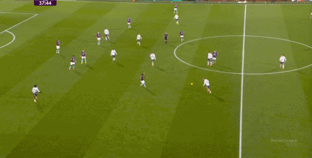 真正打开了空间的进攻,直至第31分钟才出现,库尼亚先拉边,再进中路,就和布鲁诺有了联系的可能性:
