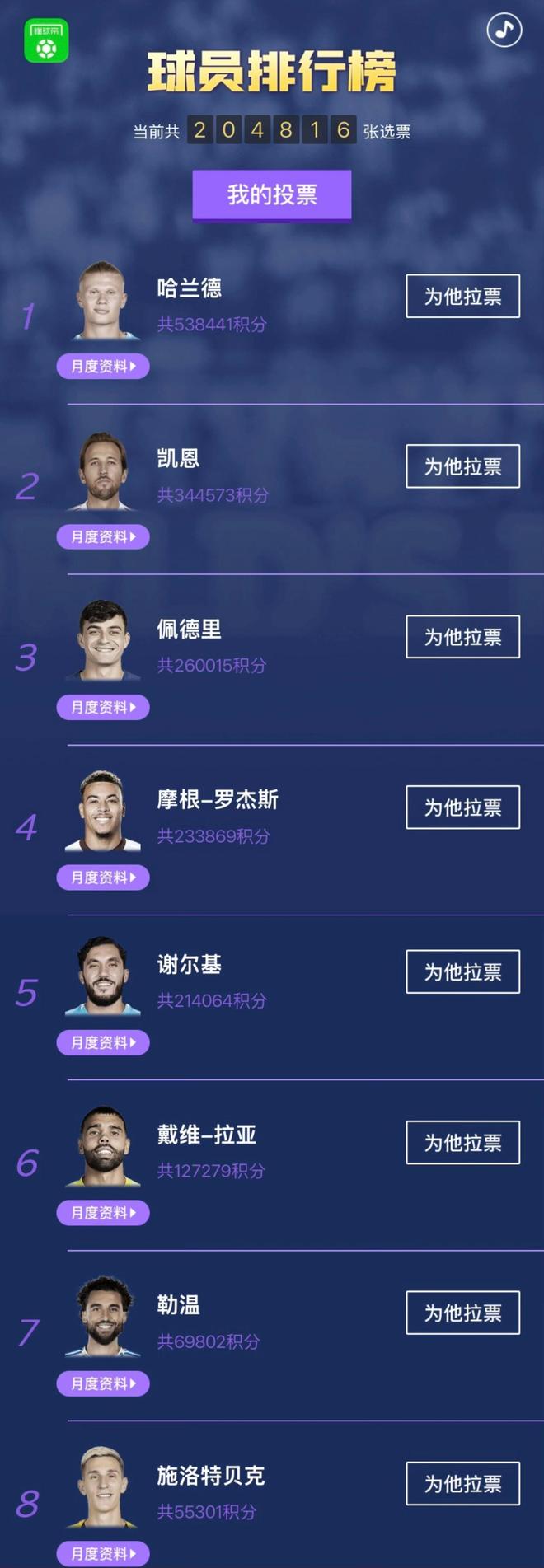 球迷朋友们大家好,欢迎来到懂球帝国际足坛12月月度MVP评选。经过球迷投票,连续四期入围候选的哈兰德成功蝉联,凯恩本赛季三次入围候选均排名第二。