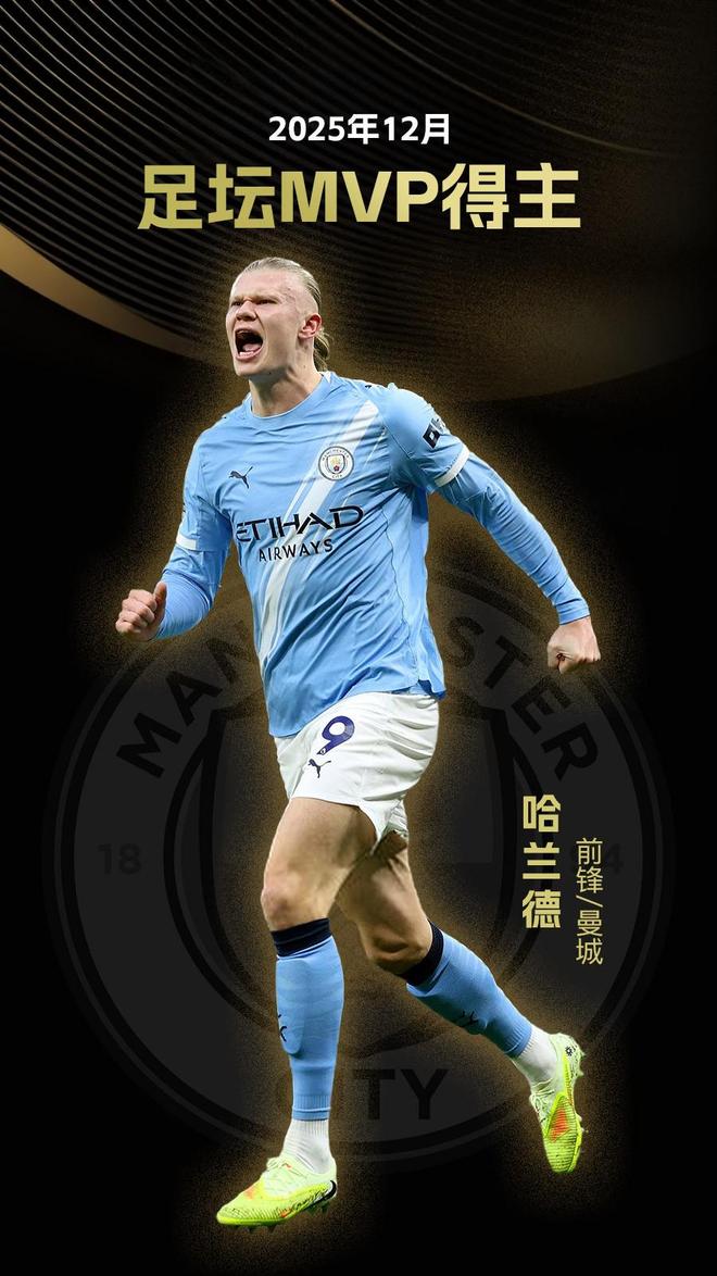 懂球帝2025年12月足坛MVP:哈兰德蝉联!